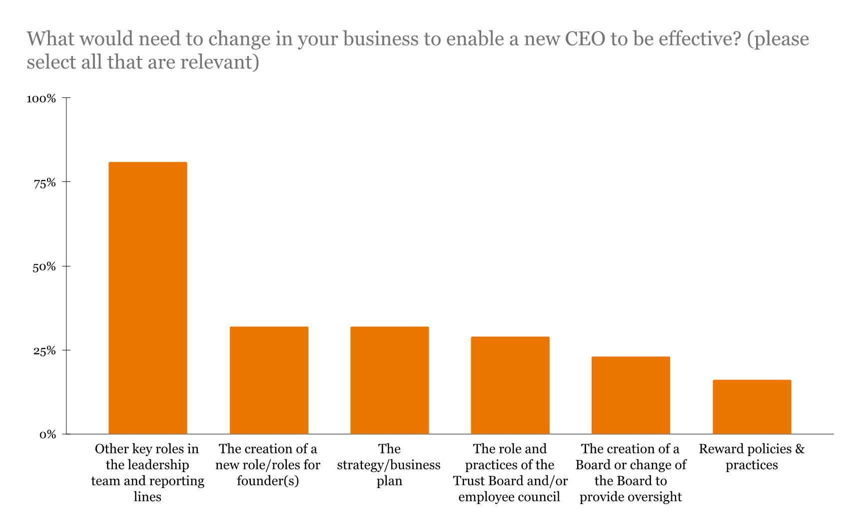 It’s important that any new leader coming into the business feels supported and able to succeed. Barry asked EOA Conference delegates what should happen to help a new CEO thrive in their role, and overwhelmingly they said that other key roles and reporting lines must be reviewed. Leadership succession planning should consider all key roles within the business, and not just those of the CEO/founder.